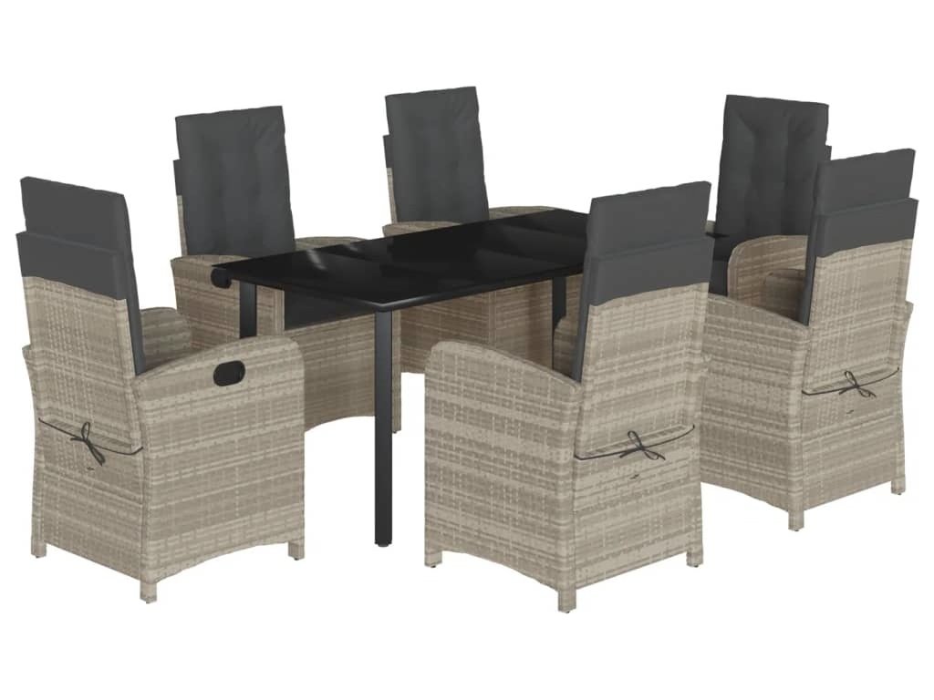 7dílný zahradní jídelní set s poduškami světle šedý polyratan [3212426]