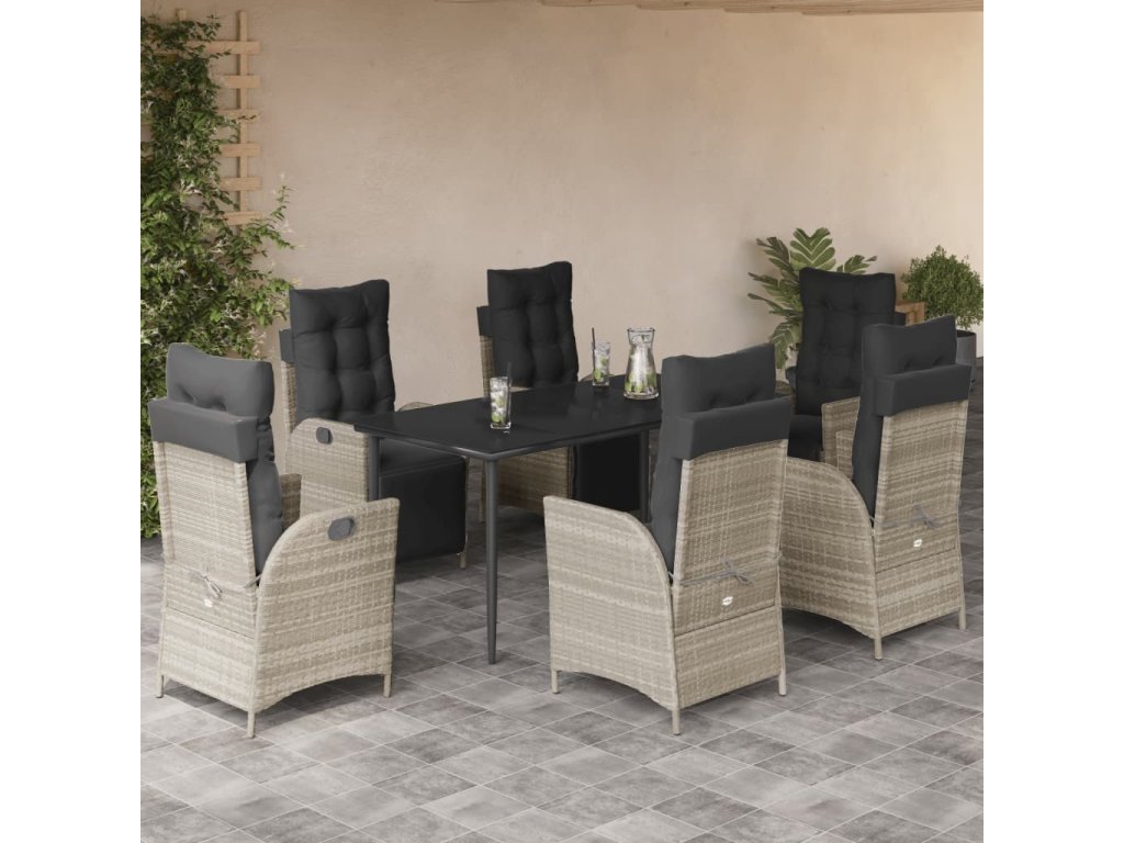 7dílný zahradní jídelní set s poduškami světle šedý polyratan [3213466]
