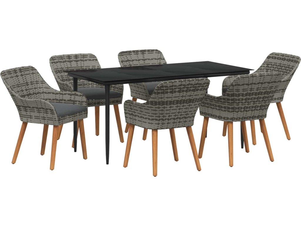 Zahradní jídelní souprava s polštářem 7 pcs Šedá polyratan [3261681]