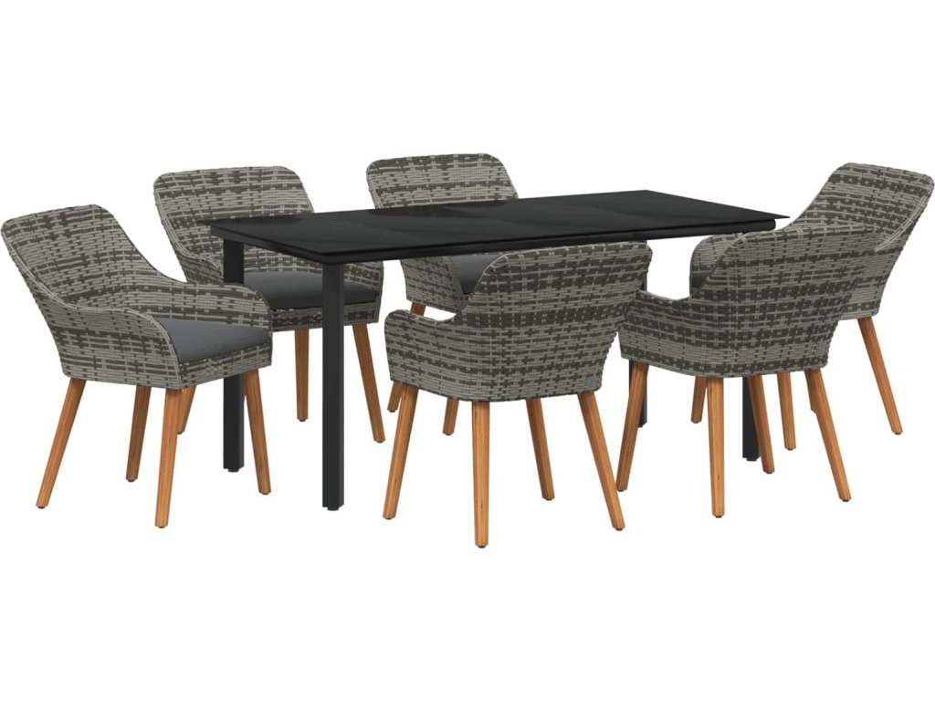 Zahradní jídelní souprava s polštářem 7 pcs Šedá polyratan [3261688]