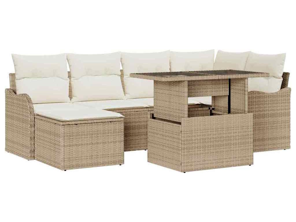 Sada zahradních pohovek s polštářem 7 pcs Béžová Poly ratan [3357234]