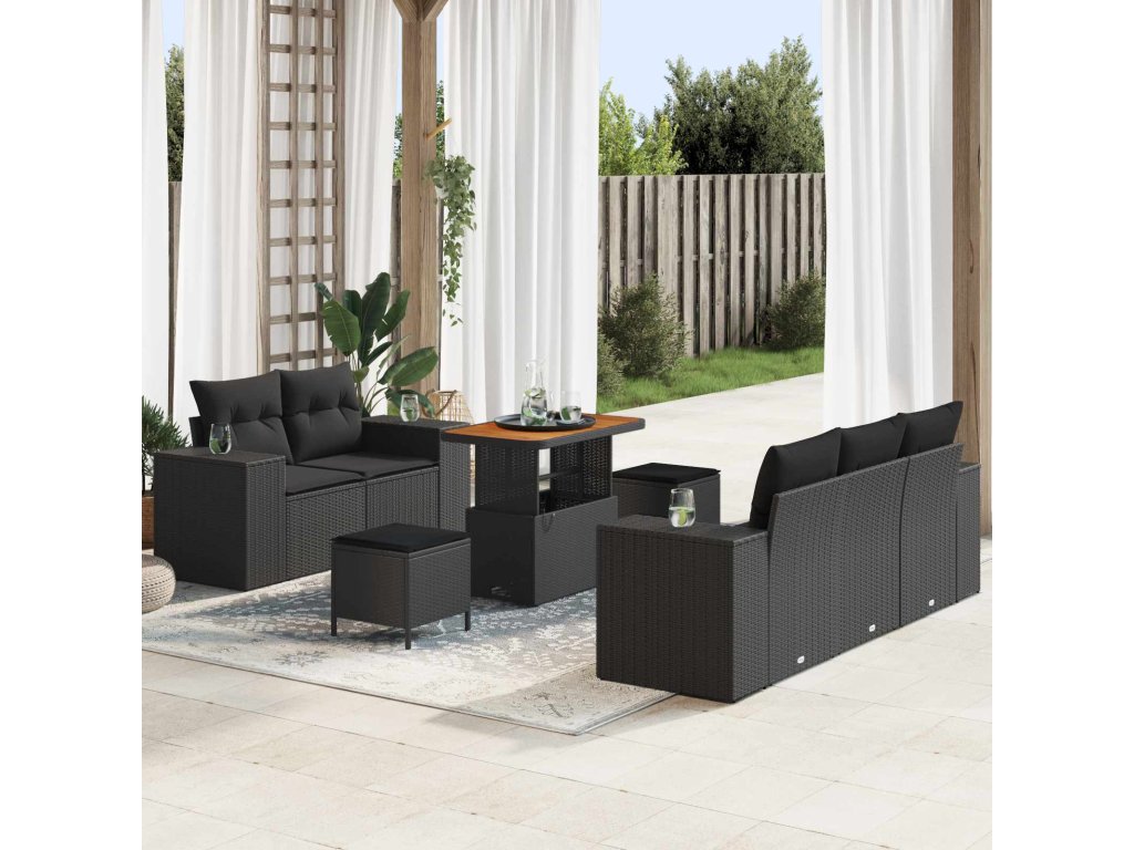 Sada zahradních pohovek s polštářem 8 pcs Černá polyratan [3361949]