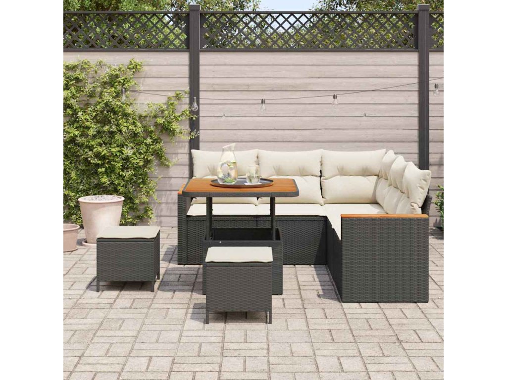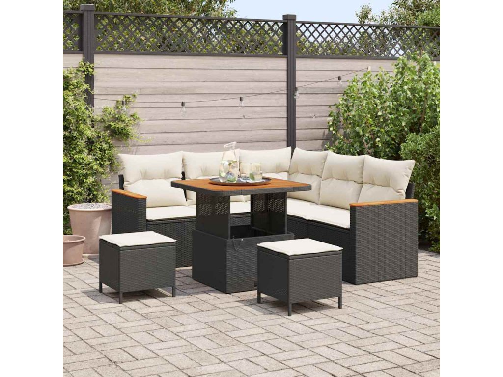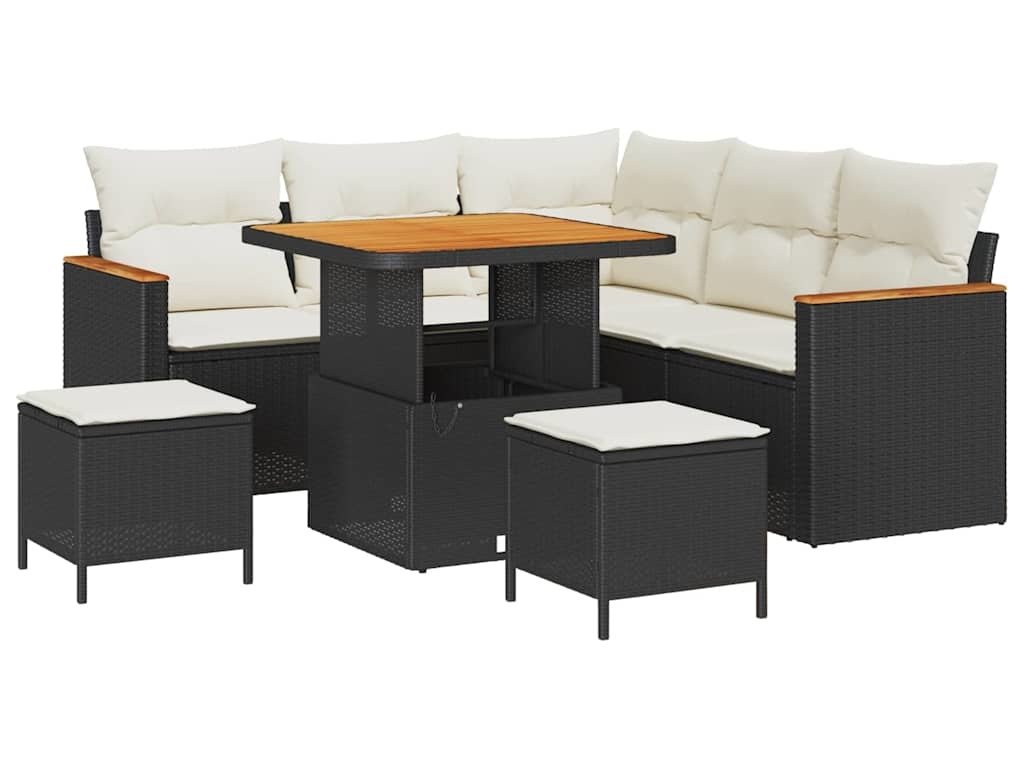Sada zahradních pohovek s polštářem 8 pcs Černá Poly ratan [3364990]