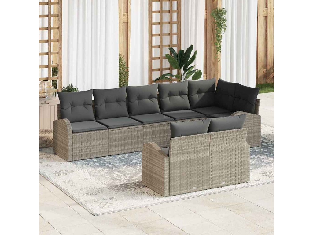 Tato moderní zahradní pohovková sada je skvělým doplňkem jakéhokoli venkovního prostoru, navržená s důrazem na jednoduchost a funkčnost. S čistými liniemi a minimálním zdobením se hodí k různým zahradním a terasovým stylům. Pohovka z polyratanu vypadá skvostně a poskytuje komfortní sezení, ideální jak na relaxaci, tak na příjemné setkání.