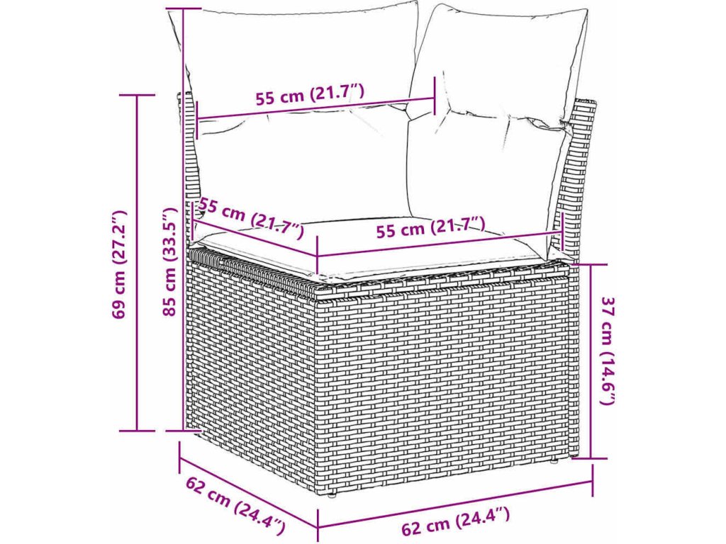 - 1 x Rohové sedadlo: 62 ×62 ×69 cm (D׊×V)