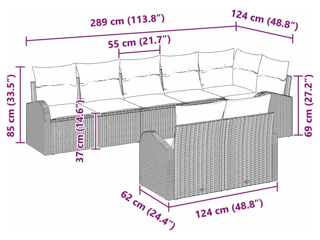 | 4 x Rukávová pohovka: | 55 ×62 ×69 cm (D׊×V) |