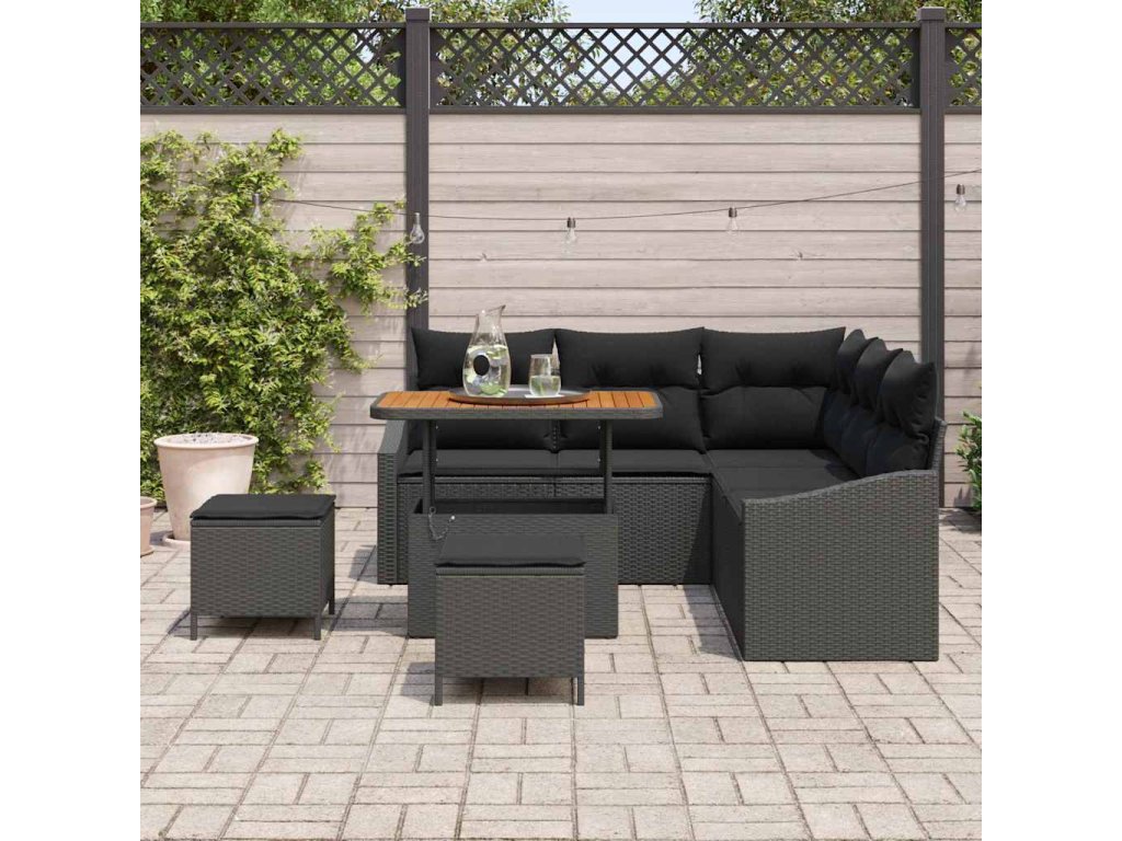 Sada zahradních pohovek s polštářem 8 pcs Černá polyratan [3362654]