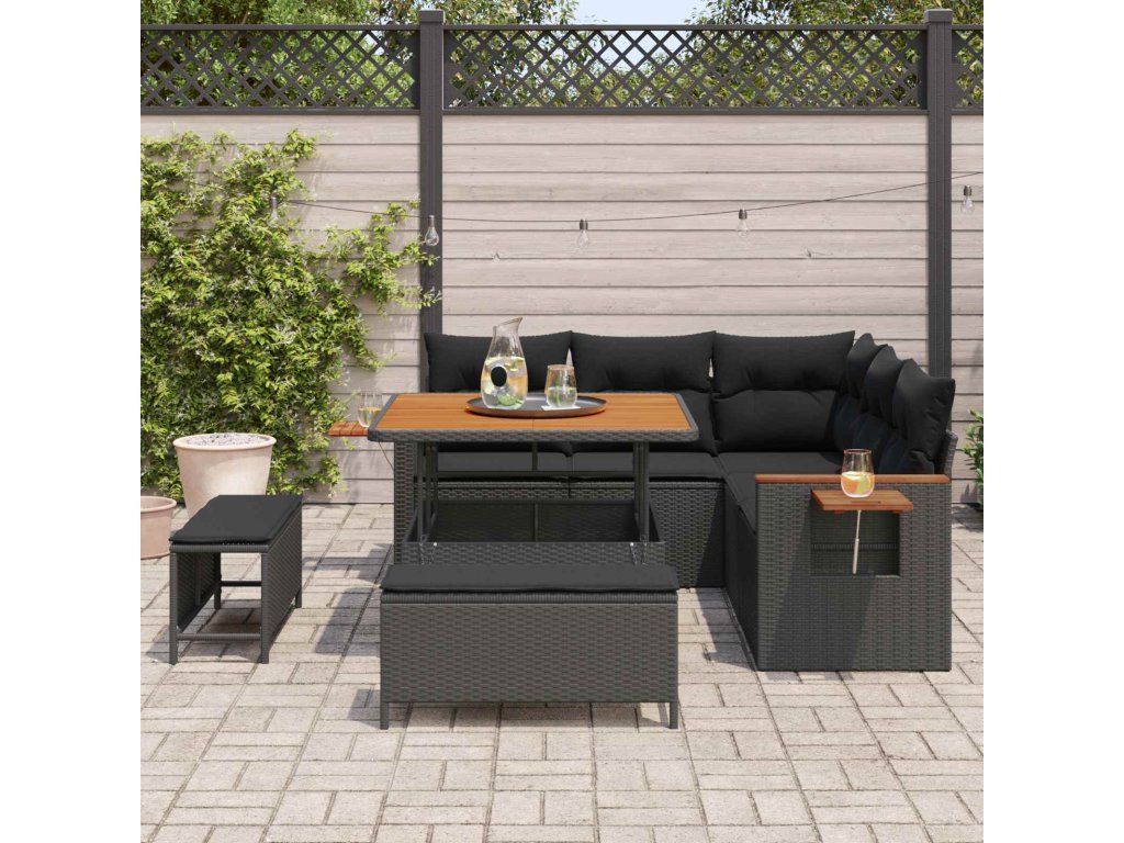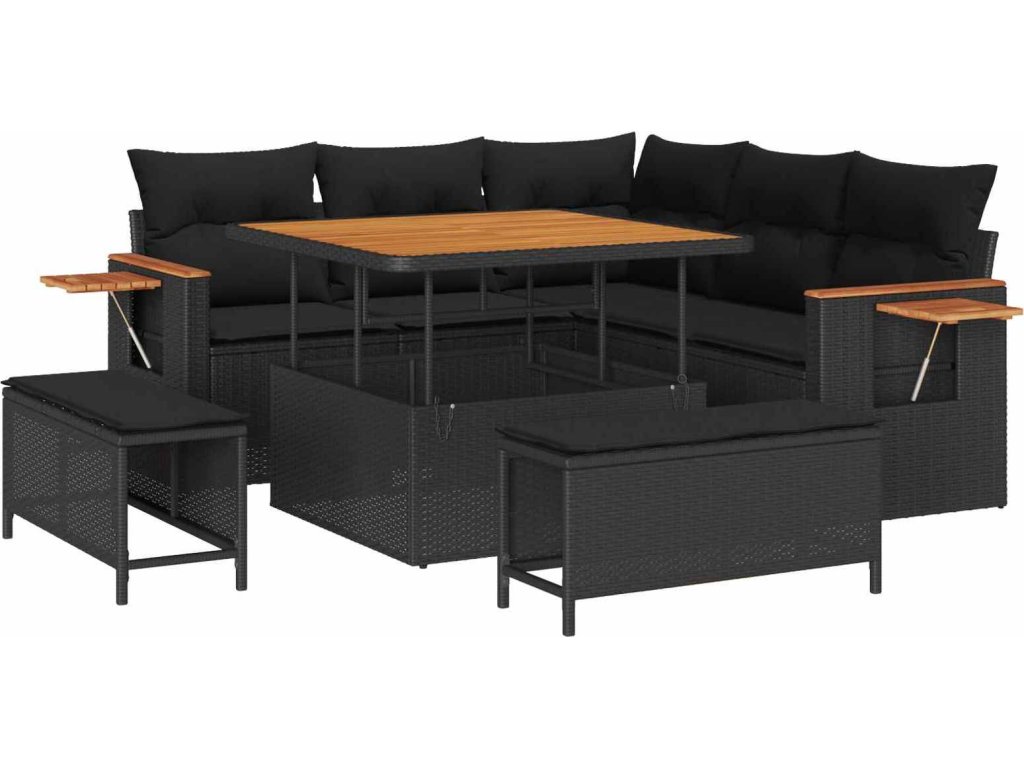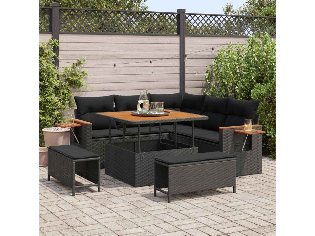 Sada zahradních pohovek s polštářem 8 pcs Černá [3363164]