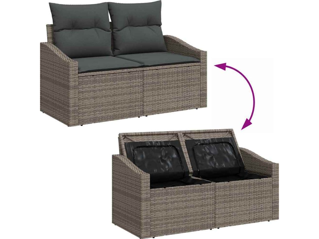 Set pohovek s polštářem s úložištěm 8 pcs Šedá polyratan [3355298]