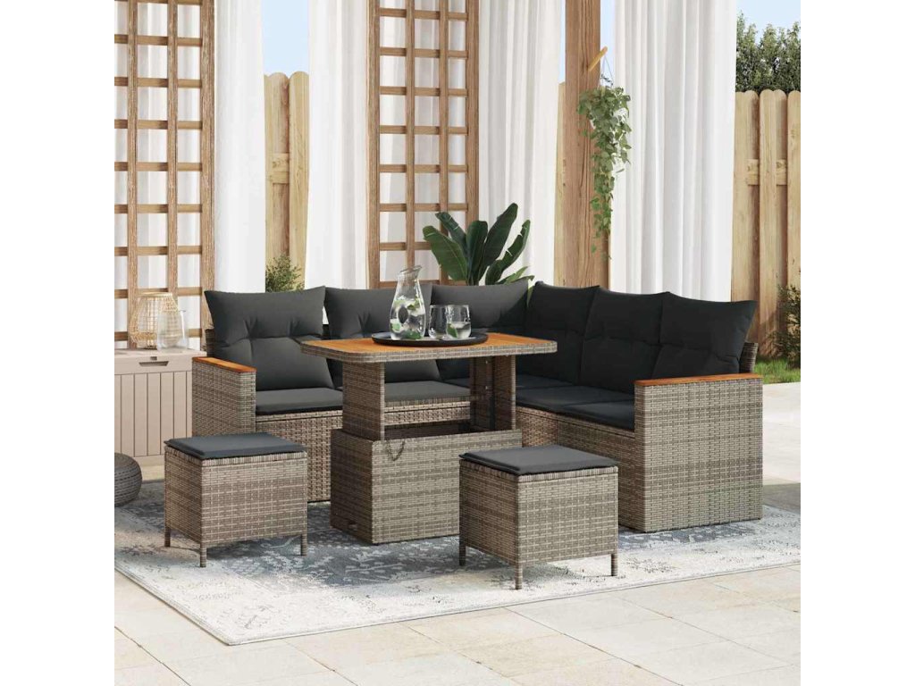Tahle zahradní sedací souprava spojuje moderní styl s funkčností, ideální pro přetvoření vašich venkovních prostor na super odpočinkové zóny. S čistými liniemi a minimálním zdobením se skvěle hodí do zahrad a teras, a zvyšuje atraktivitu každého prostoru. Navržena tak, aby byla maximálně flexibilní, modulární uspořádání umožňuje přizpůsobit rozložení podle vašich potřeb, ať už pro neformální posezení nebo klidný večer o samotě. Robustní materiály zajišťují dlouhou životnost, což činí tento set rozumnou volbou pro každou venkovní obytnou plochu.