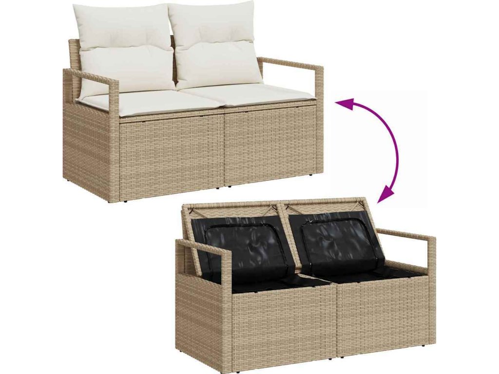 - Praktické Úložiště: Každý kus sofa má skryté úložné prostory, chráněné voděodolnými taškami – ideální na uschování polštářů, dek nebo dětských hraček, takže tvůj venkovní prostor zůstane uklizený.