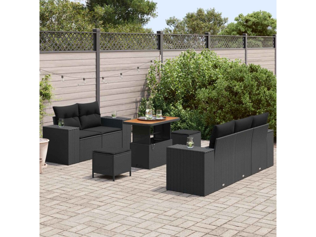 Sada zahradních pohovek s polštářem 8 pcs Černá Poly Ratan [3363899]