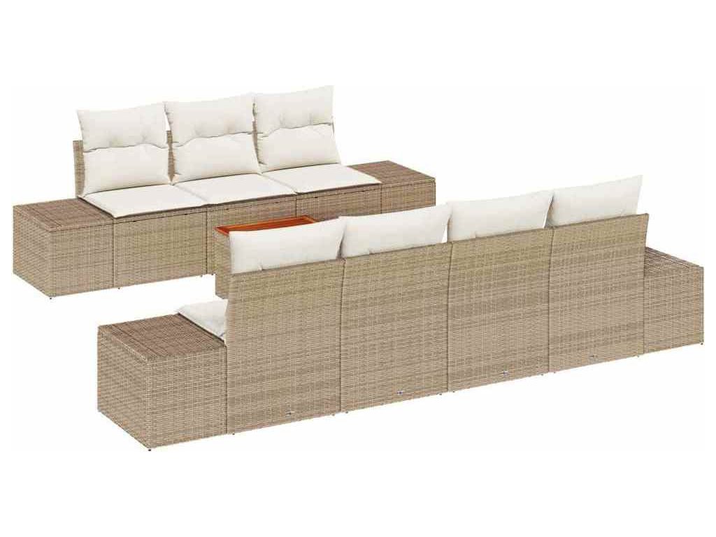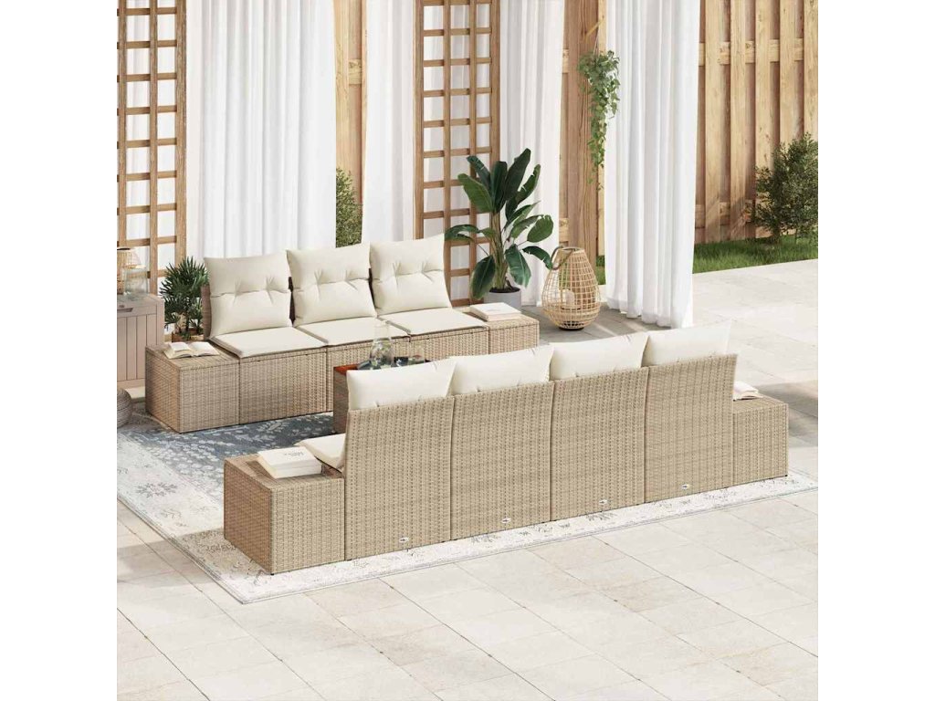 Sada zahradních pohovek s polštářem 8 pcs Béžová polyratan [3347918]