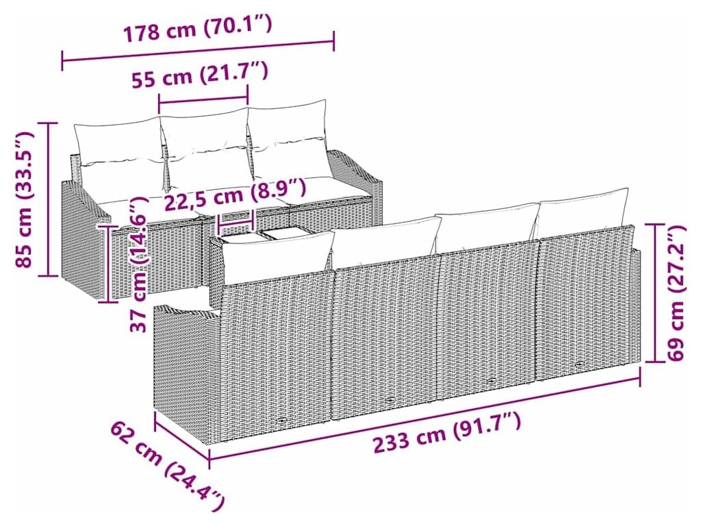 - Robustní poly ratan: Souprava je vyrobená z kvalitního poly ratanu, který je odolný a elegantní. Tento materiál odolává UV záření a je navržen pro dlouhou životnost. Textura dodává vizuální hloubku a skvěle vypadá ve vaší venkovní výzdobě.
