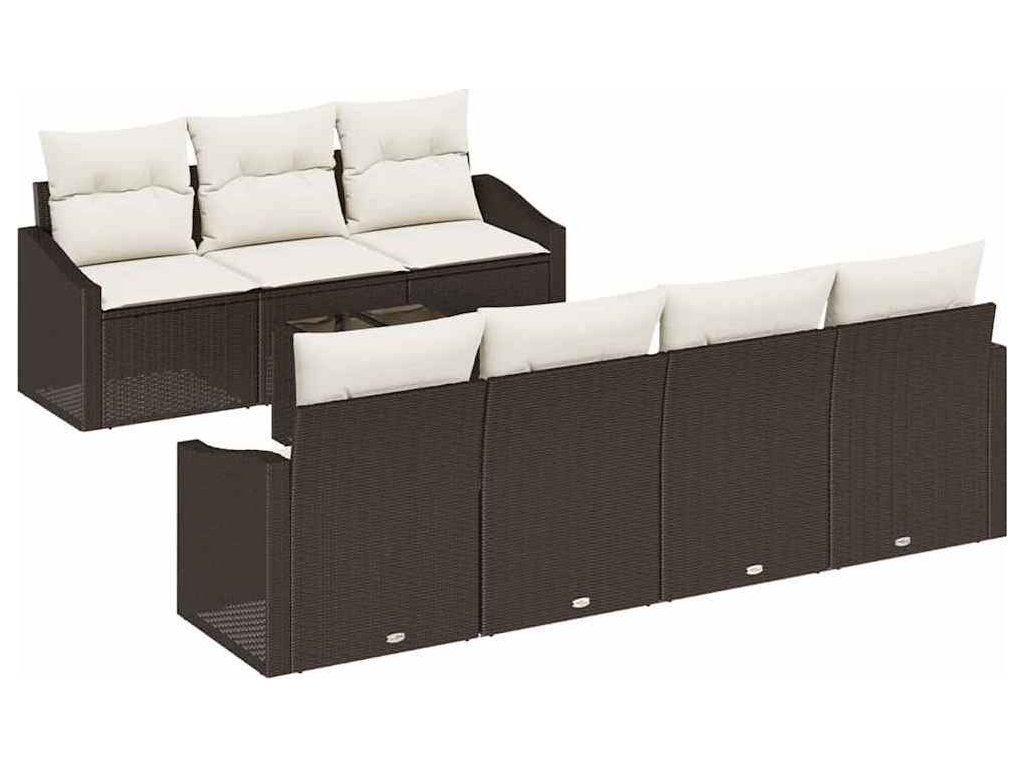 Set pohovek s polštářem 8 pcs Hnědá a krémová polyratan [3355297]