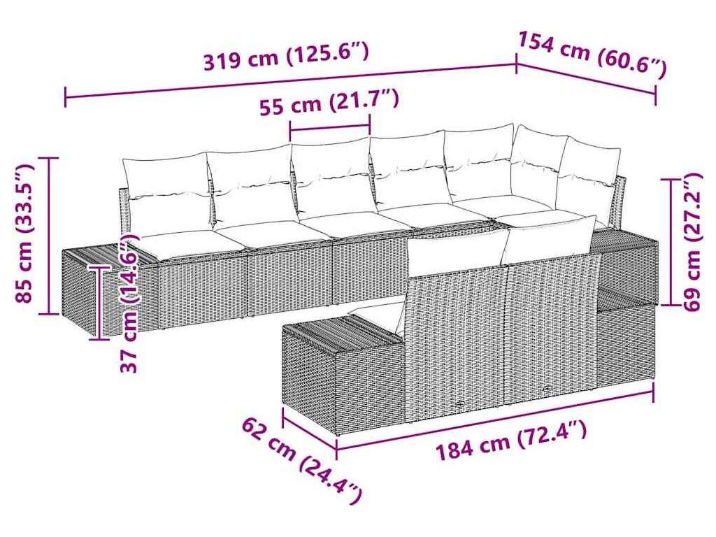 - 4 x Boční pohovka: 92 x 62 x 69 cm (D x Š x V)