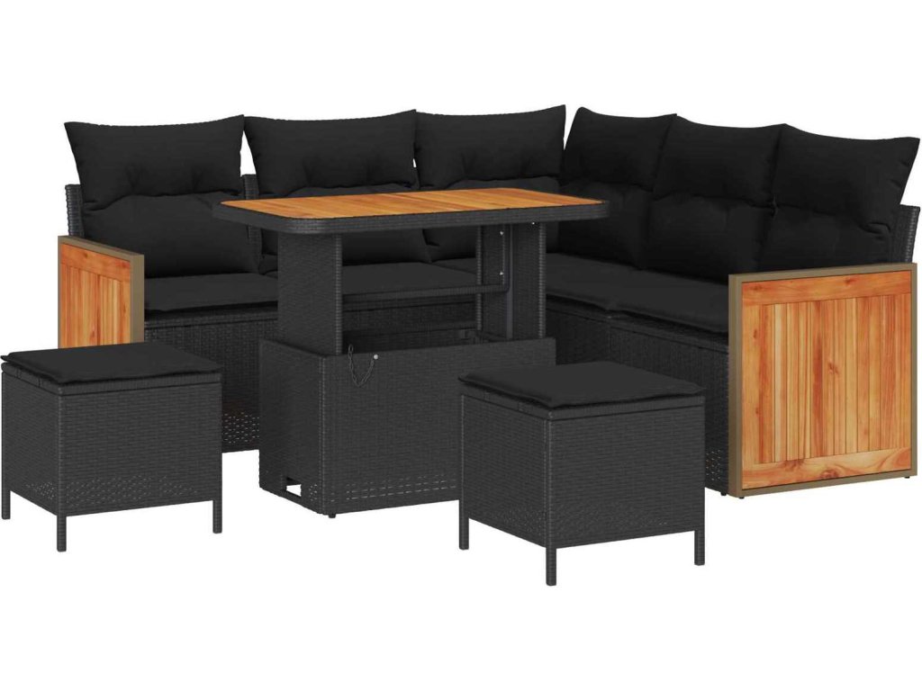 Sada zahradních pohovek s polštářem 8 pcs Černá [3363304]