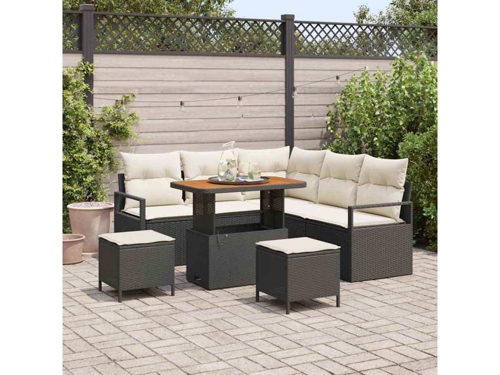 Sada zahradních pohovek s polštářem 8 pcs Černá a krémová [3364475]