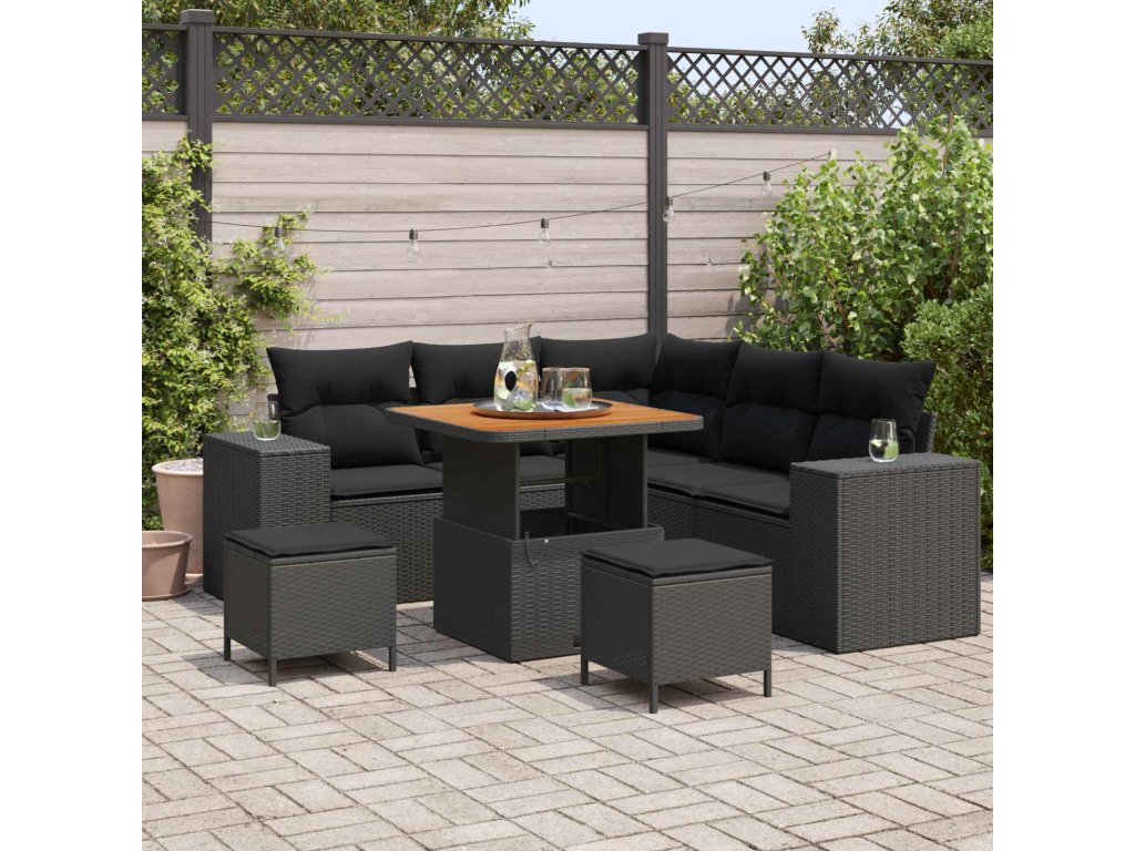 Sada zahradních pohovek s polštářem 8 pcs Černá polyratan [3361999]