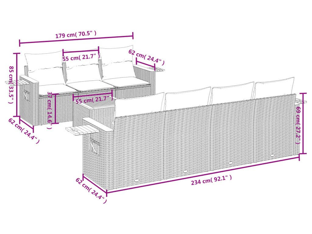 Tato zahradní sedací souprava je dokonalým doplňkem vaší zahrady, terasy nebo dvorku a poskytne vám pohodlné a příjemné místo, kde si můžete povídat s rodinou a přáteli nebo jen tak odpočívat a užívat si pobyt venku.