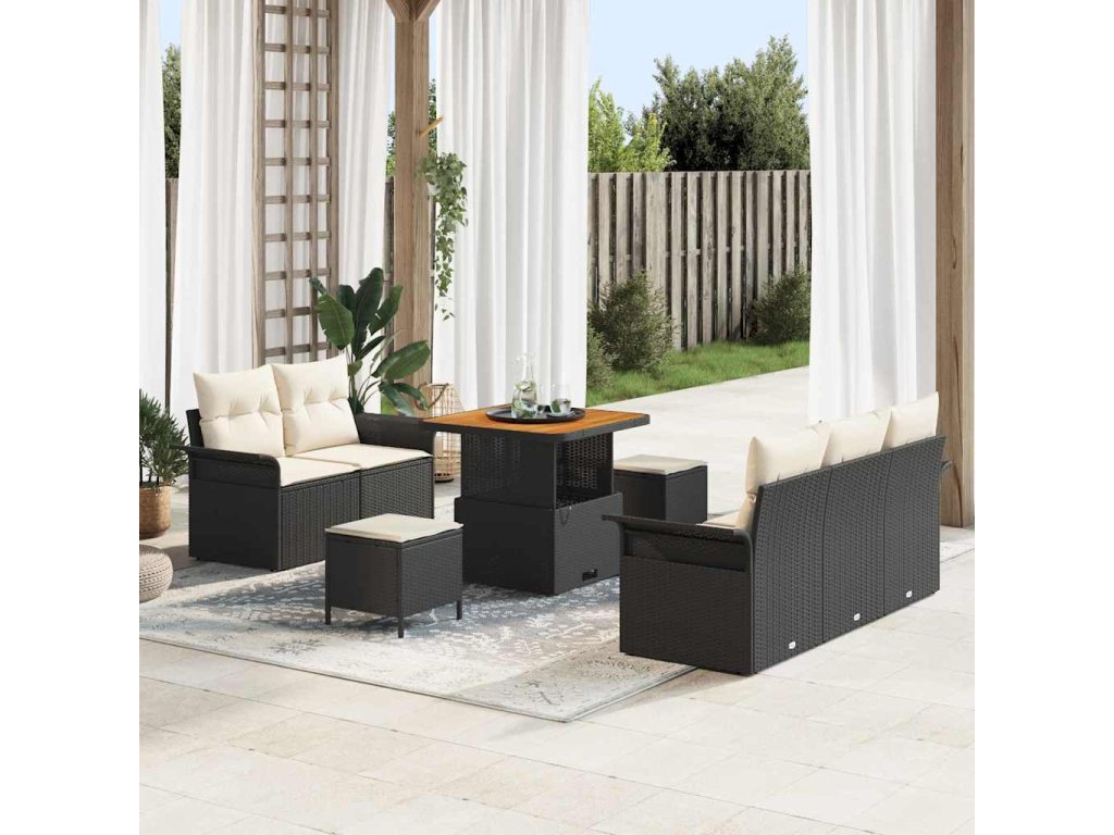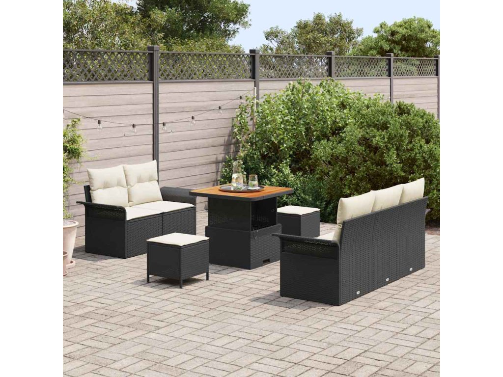 Sada zahradních pohovek s polštářem 8 pcs Černá a krémová [3364025]