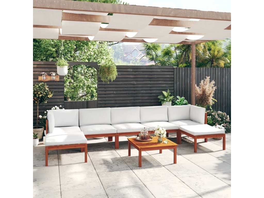 8dílná zahradní souprava s polštáři krémová 63 x 63 cm [3057906]