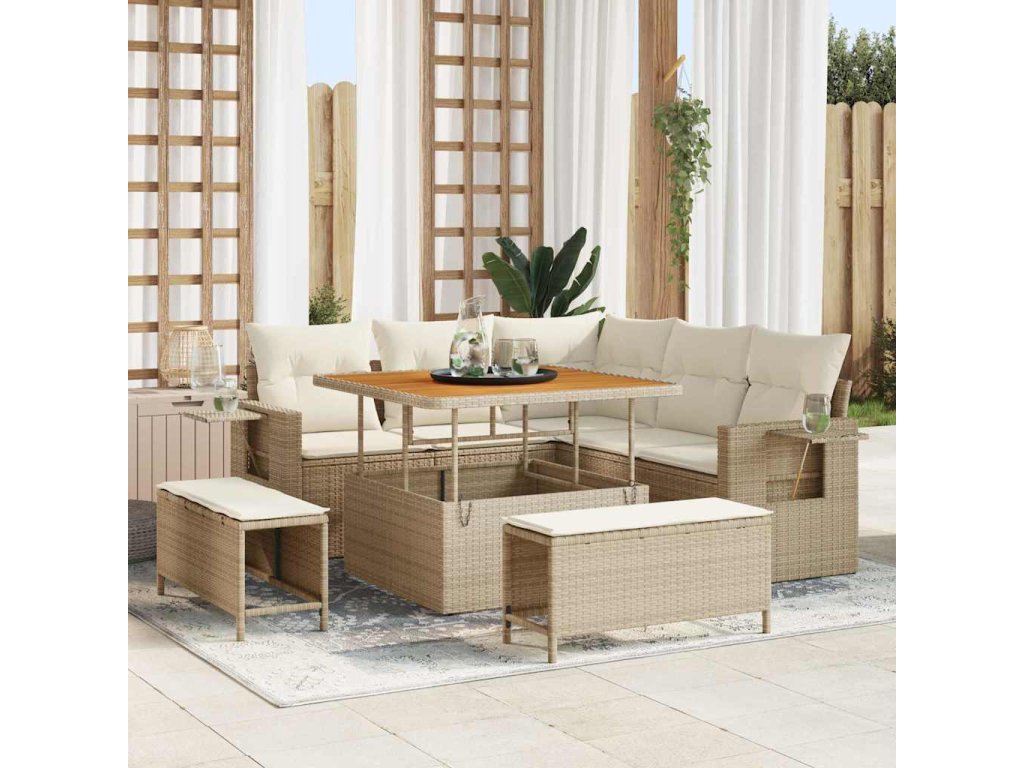 Sada zahradních pohovek s polštářem 8 pcs Béžová polyratan [3361736]