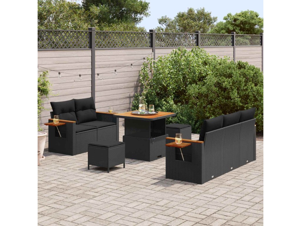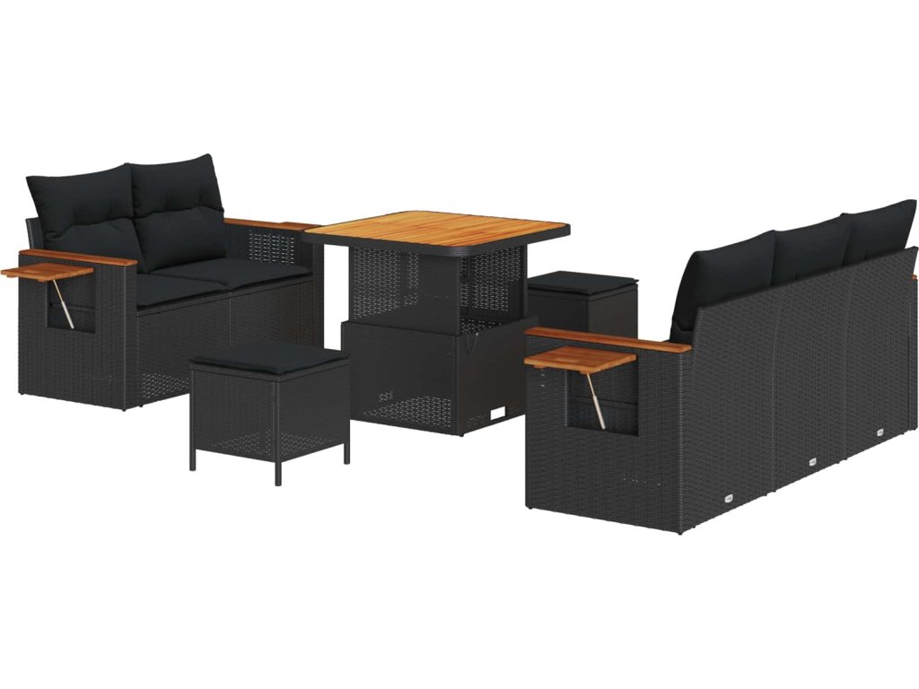 Sada zahradních pohovek s polštářem 10 pcs Černá polyratan [3365064]