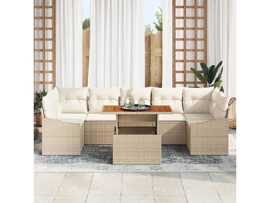 Zahradní jídelní souprava s polštářem 8 pcs Béžová a krémová [3349805]