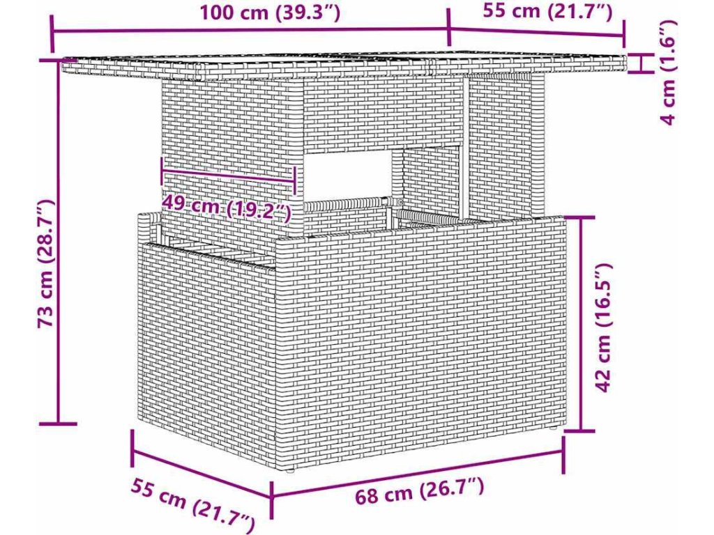 - Materiál: Poly ratan a práškově lakovaná ocel a sklo