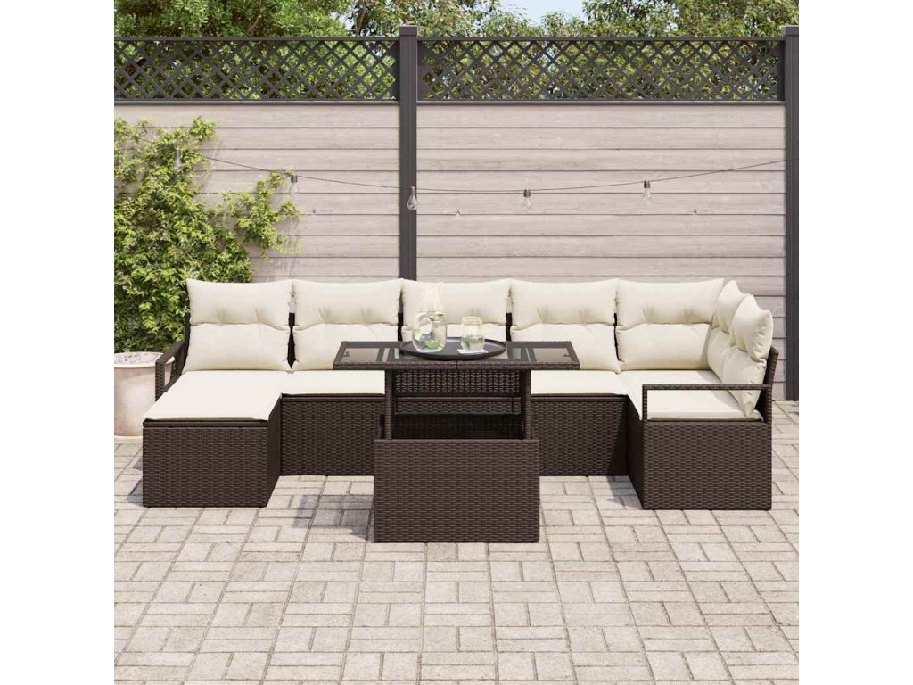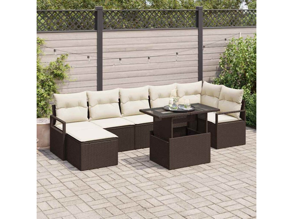 Sada zahradních pohovek s polštářem 8 pcs Hnědá a krémová [3348864]