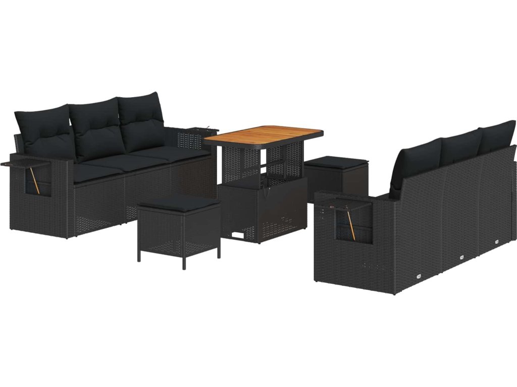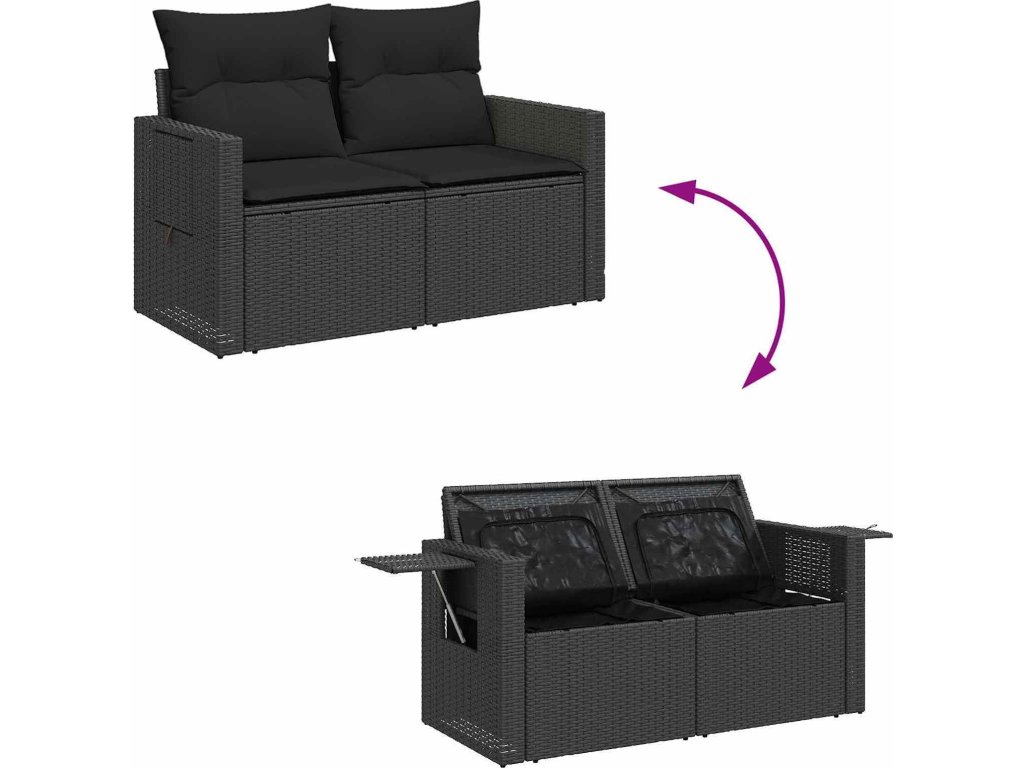 Sada zahradních pohovek s polštářem s úložištěm 9 pcs Černá [3363649]