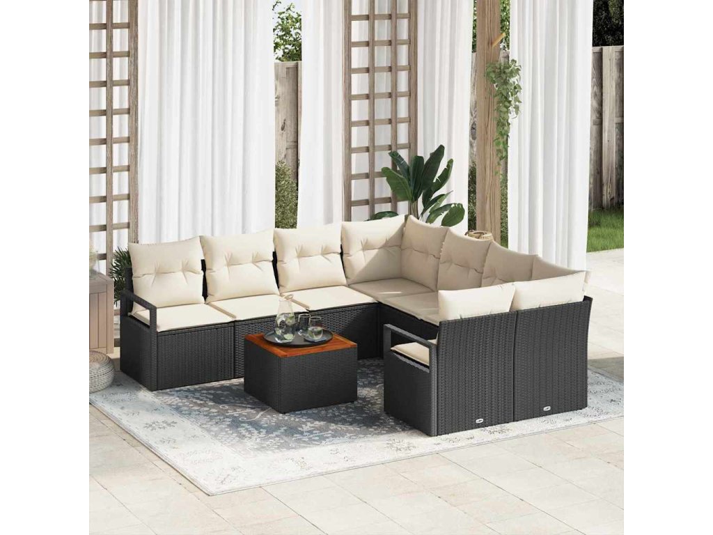 Sada zahradních pohovek s polštářem 9 pcs Černá polyratan [3347684]