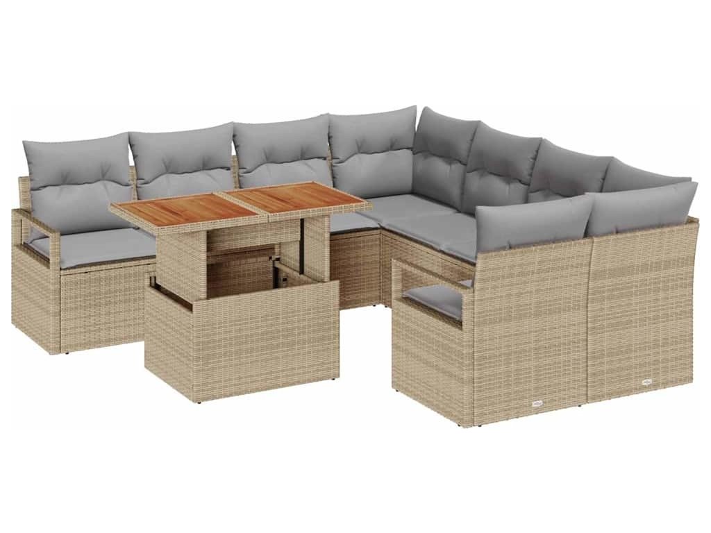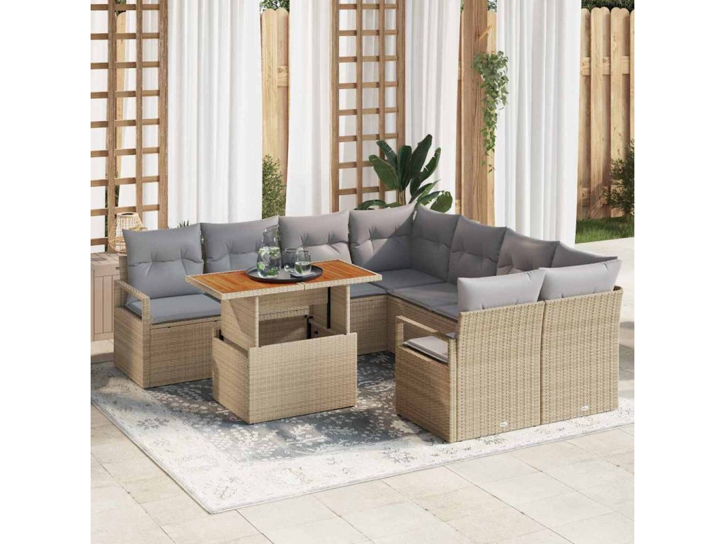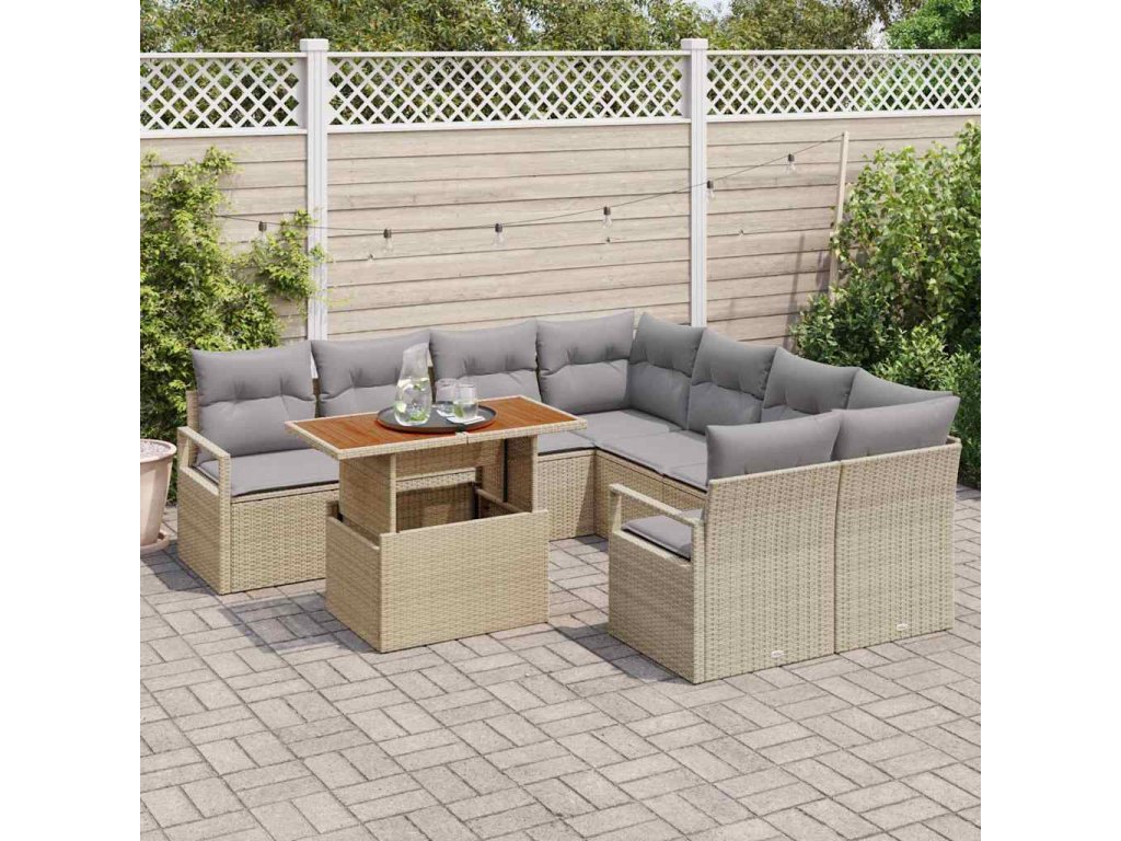 Zahradní jídelní souprava s polštářem 9 pcs Beige a šedá [3349692]