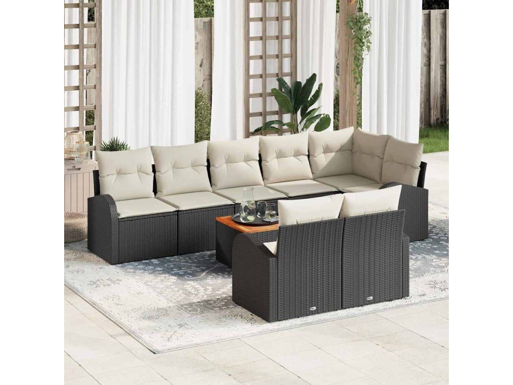 Sada zahradních pohovek s polštářem 9 pcs Černá polyratan [3347593]