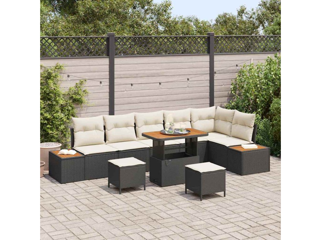 Sada zahradních pohovek s polštářem 9 pcs Černá Poly ratan [3364885]