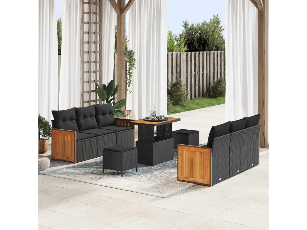 Sada zahradních pohovek s polštářem 11 pcs Černá polyratan [3365209]