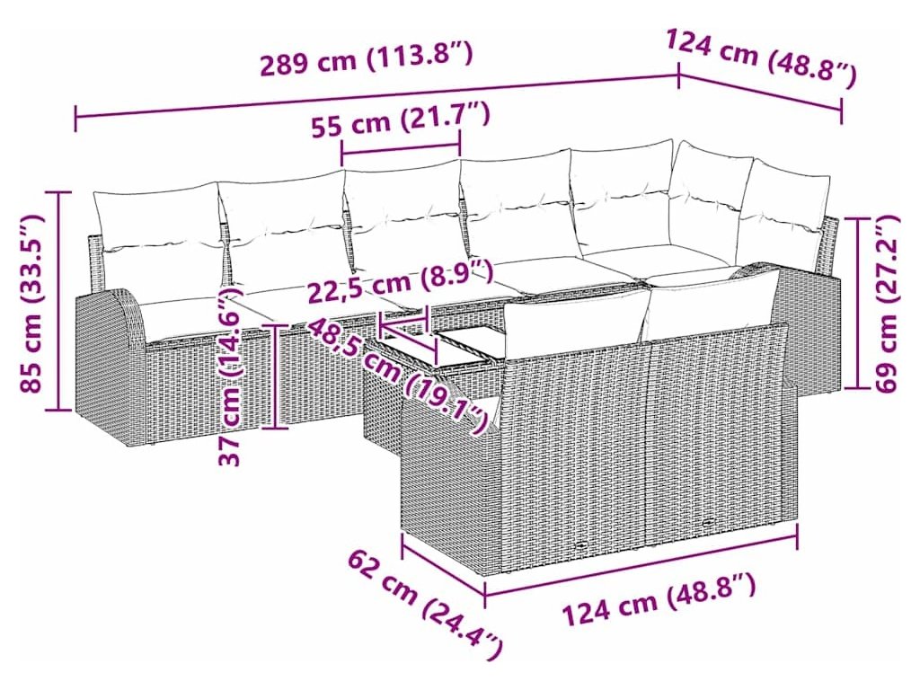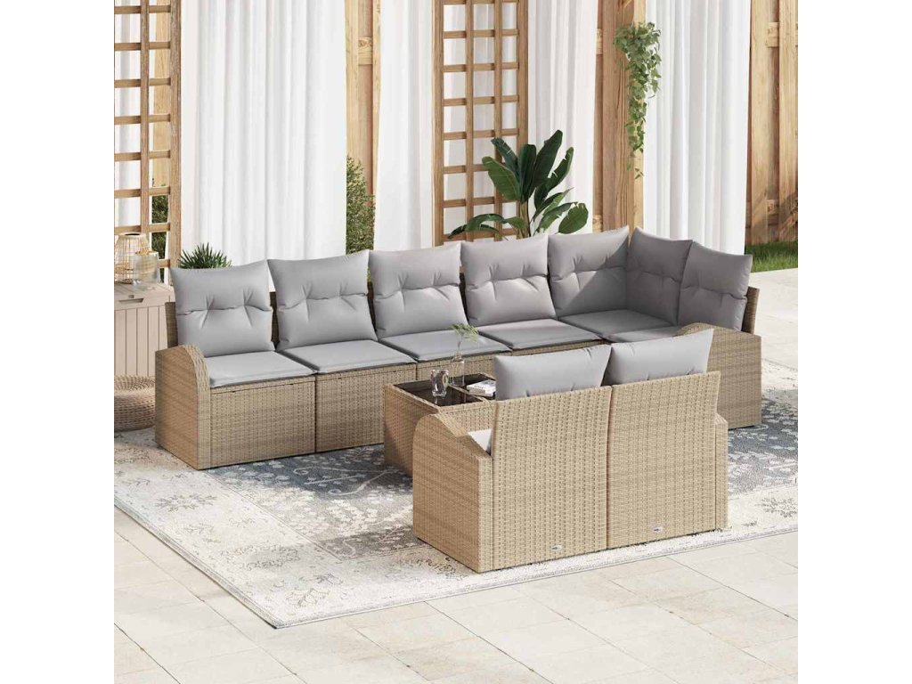Tato moderní zahradní pohovková sada je skvělým doplňkem jakéhokoli venkovního prostoru, navržená s důrazem na jednoduchost a funkčnost. S čistými liniemi a minimálním zdobením se hodí k různým zahradním a terasovým stylům. Pohovka z polyratanu vypadá skvostně a poskytuje komfortní sezení, ideální jak na relaxaci, tak na příjemné setkání.