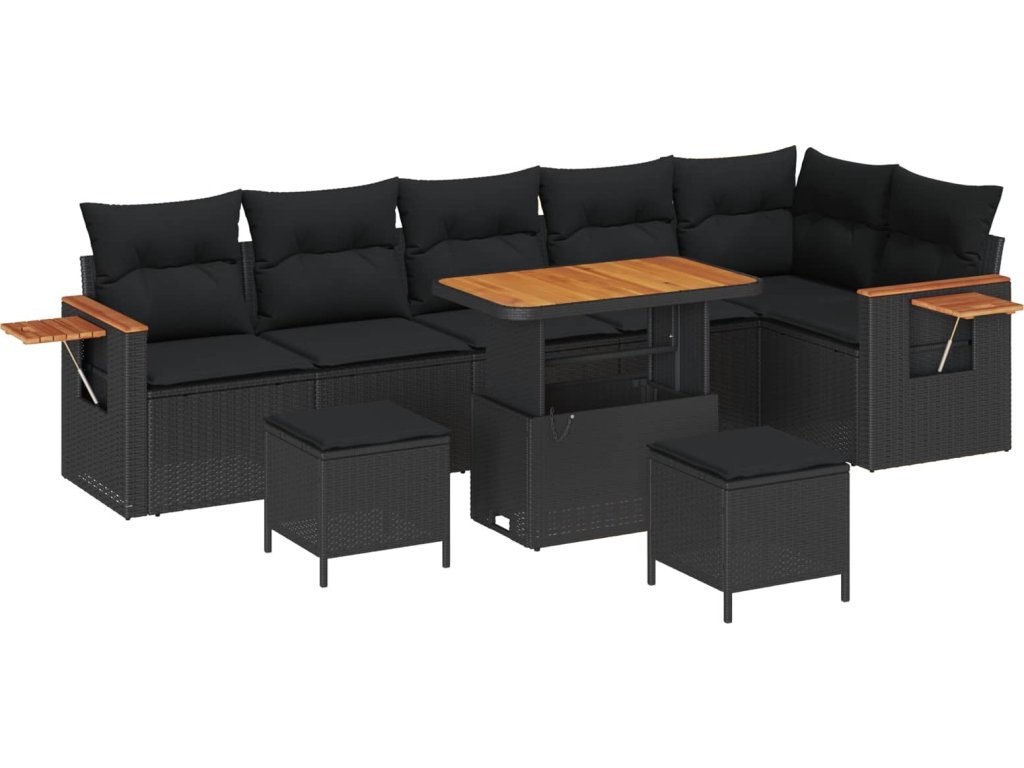 Sada zahradních pohovek s polštářem 9 pcs Černá [3363194]