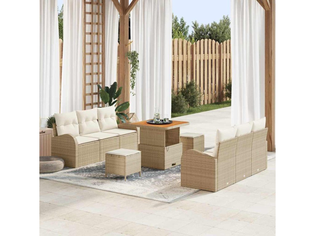 Sada zahradních pohovek s polštářem 9 pcs Béžová a krémová [3364296]