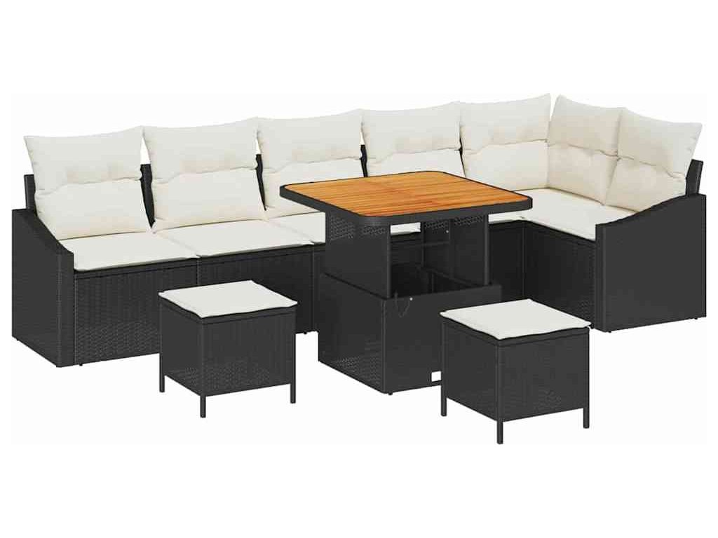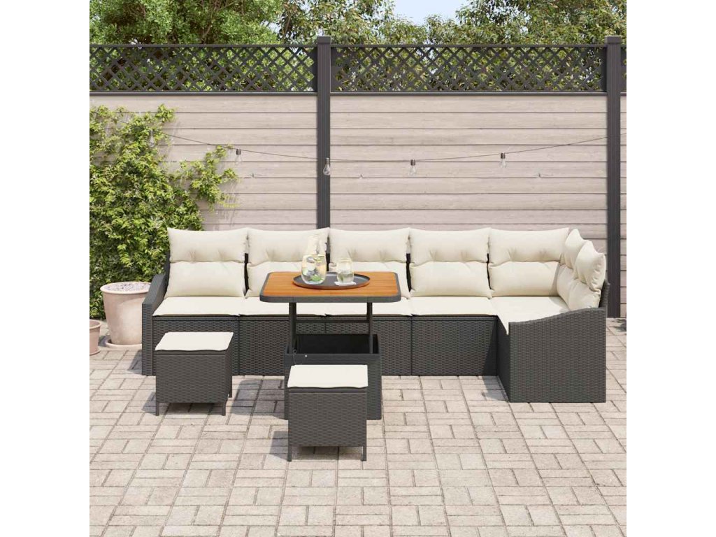 Sada zahradních pohovek s polštářem 9 pcs Černá Poly ratan [3364620]