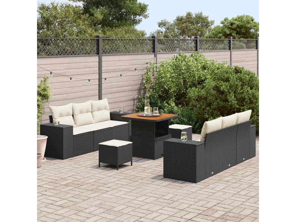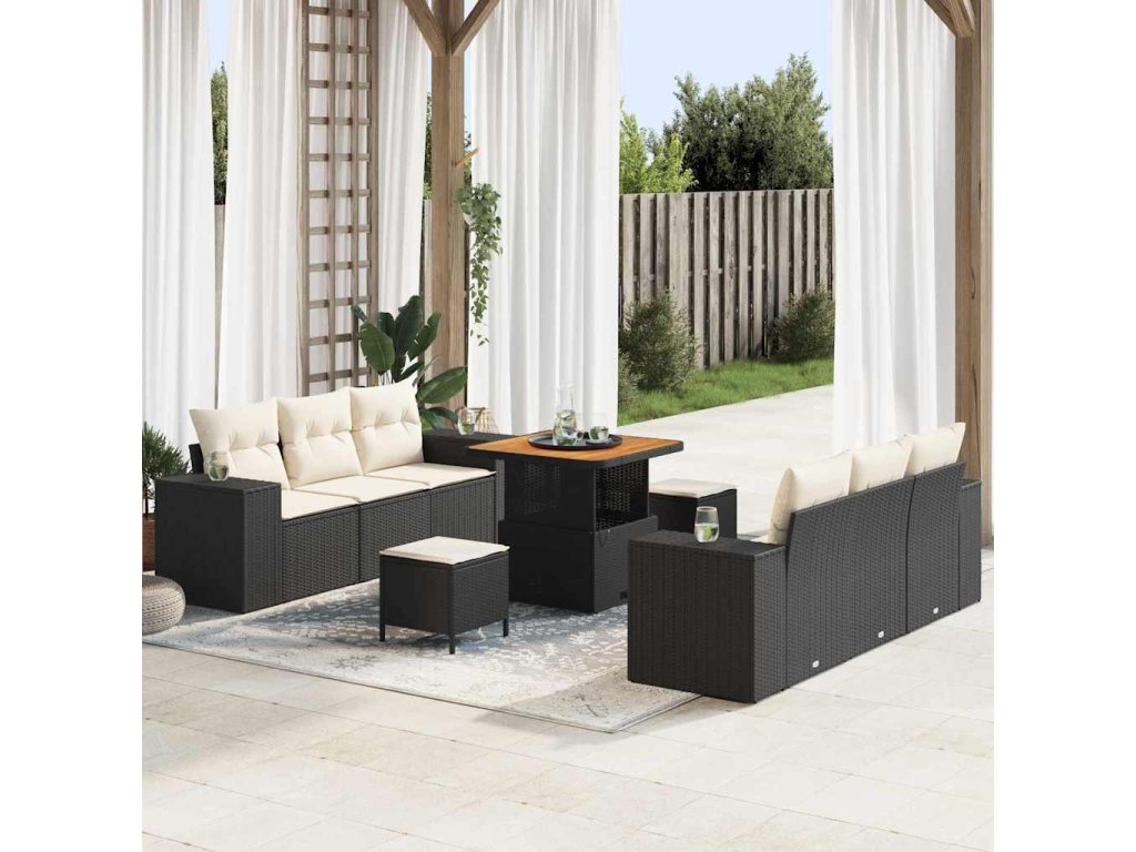 Sada zahradních pohovek 9 pcs Černá a krémová Poly Ratan [3363905]