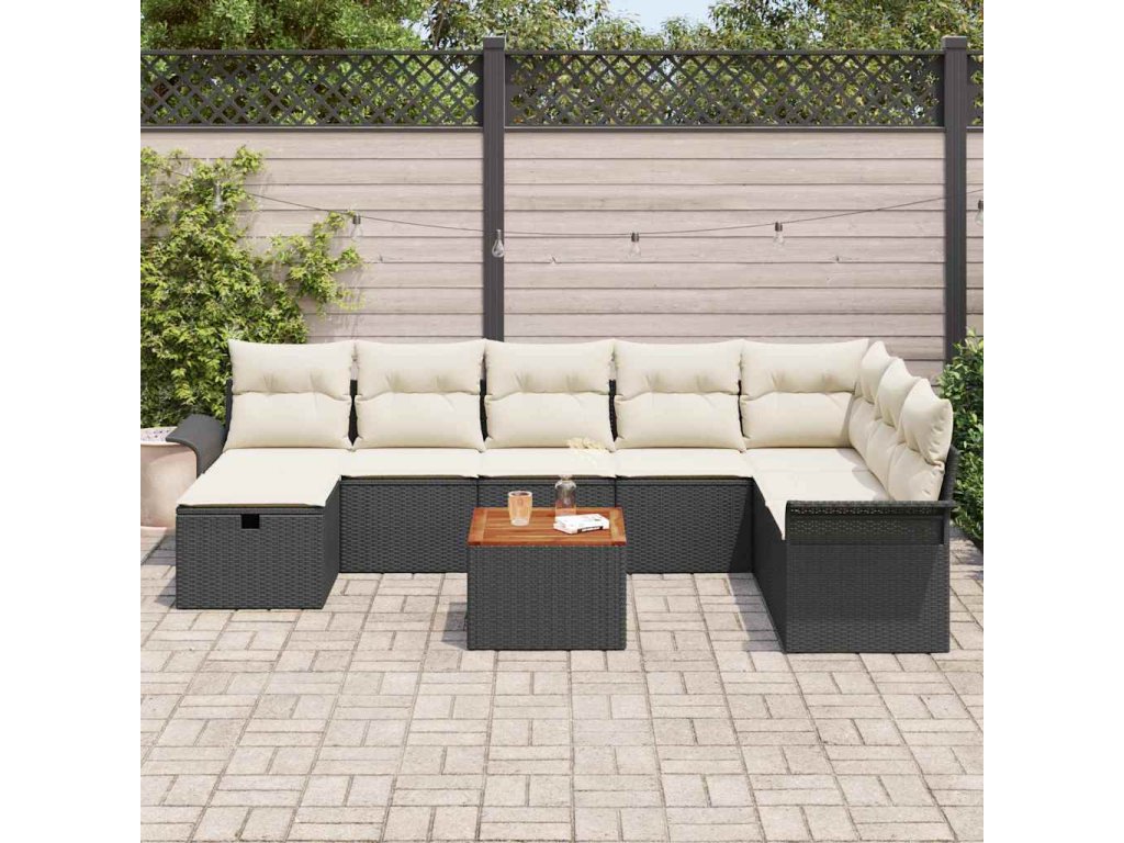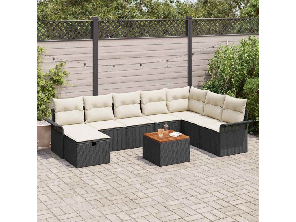 Sada zahradních pohovek s polštářem 9 pcs Černá Poly ratan [3359467]