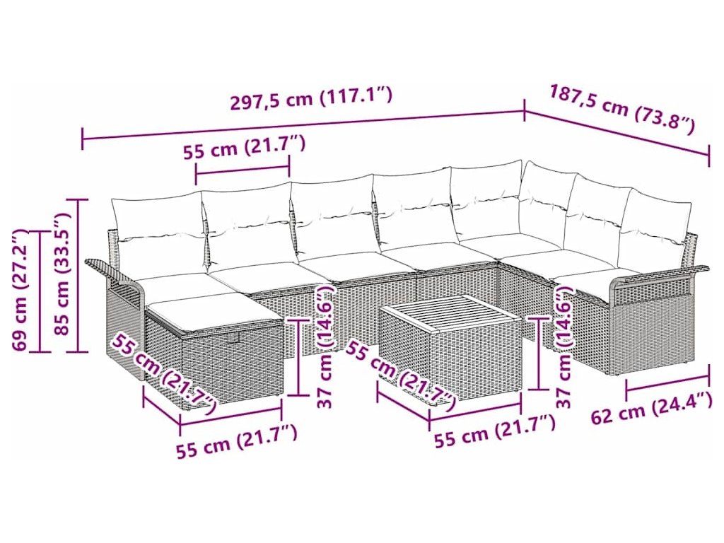 Tento moderní zahradní pohovkový set udělá z vašeho venkovního prostoru stylovou a funkční relaxační zónu. Je jednoduchý, ale maximálně funkční, má čisté linie a minimum zdobení, kdykoliv se hodí do zahrady nebo na terasu. A navíc poskytuje super pohodlí pro všechny, kteří hledají útulné venkovní útočiště.