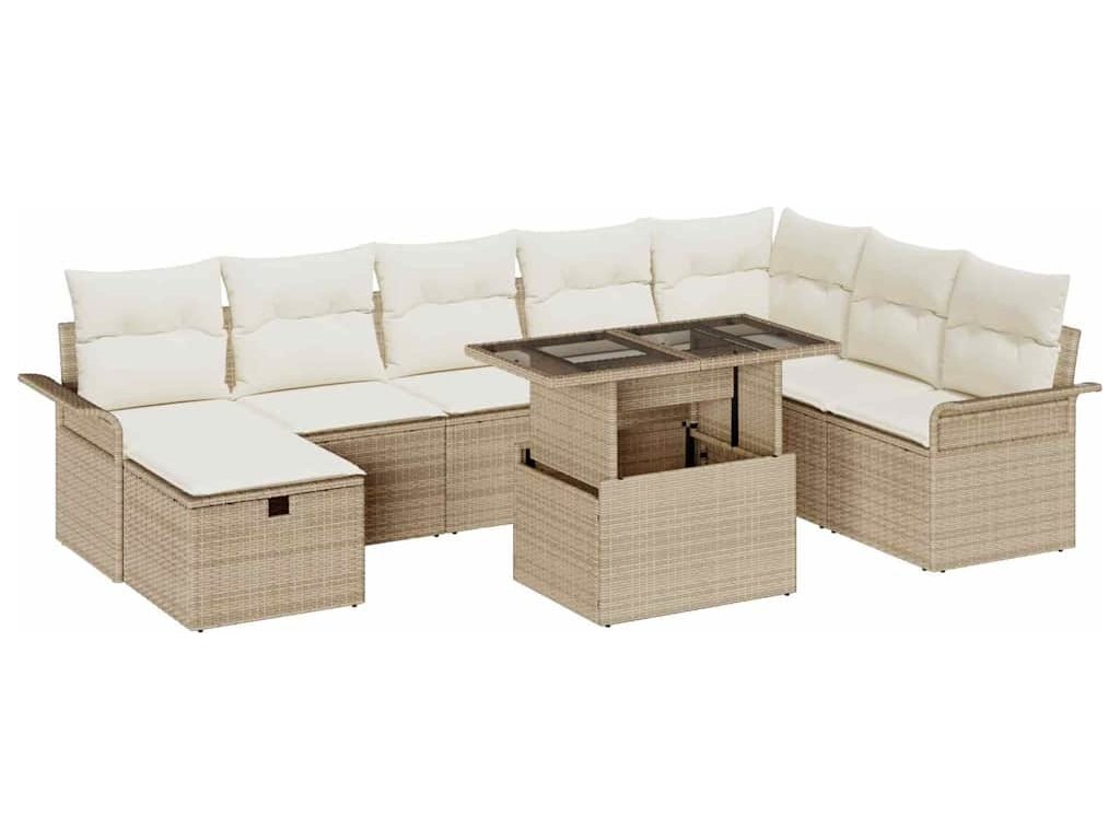 Sada zahradních pohovek s polštářem 9 pcs Béžová Poly ratan [3359698]