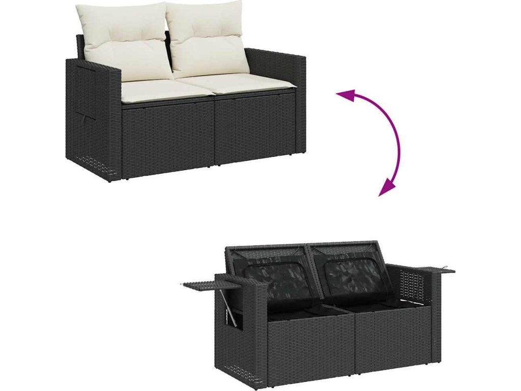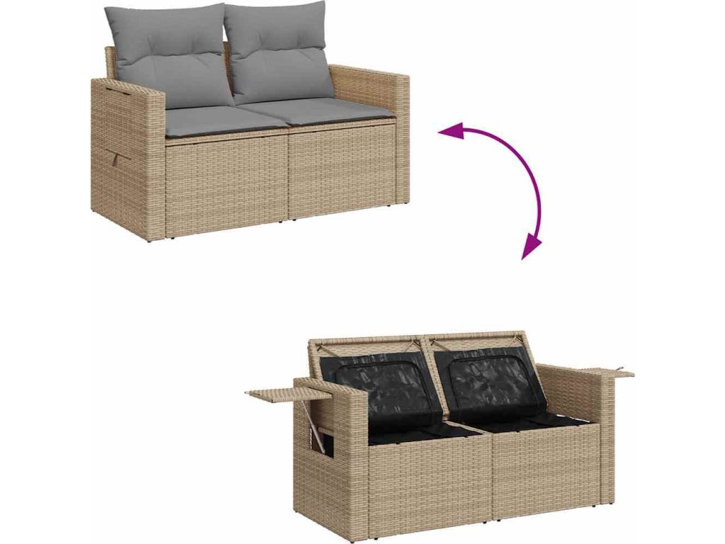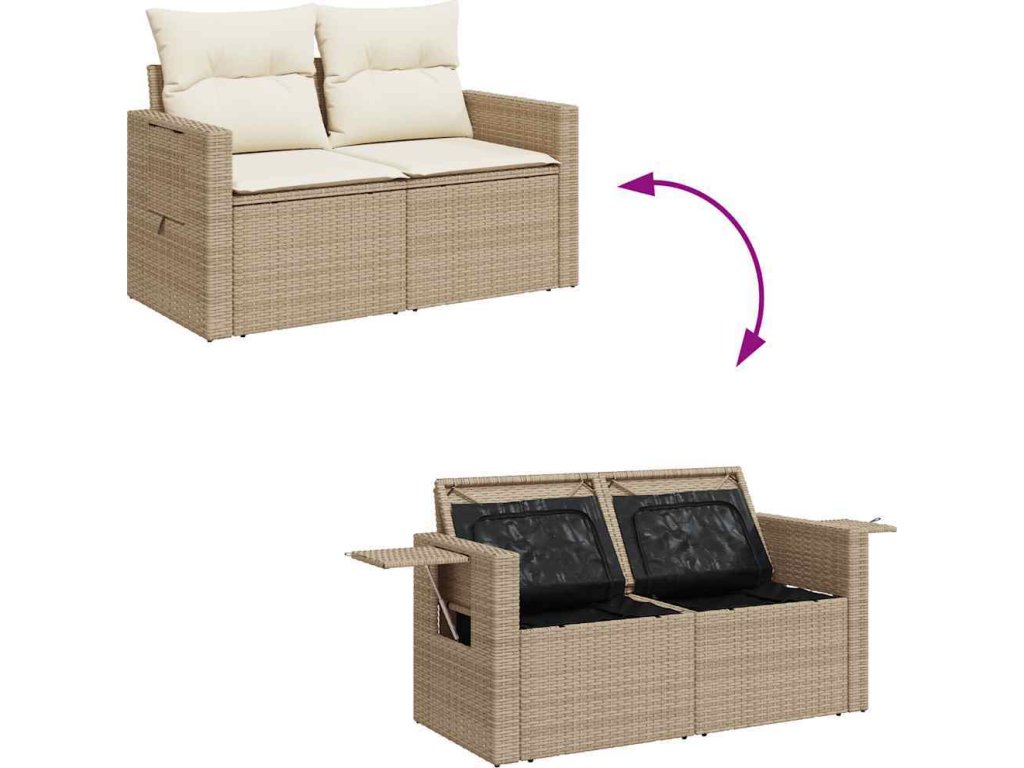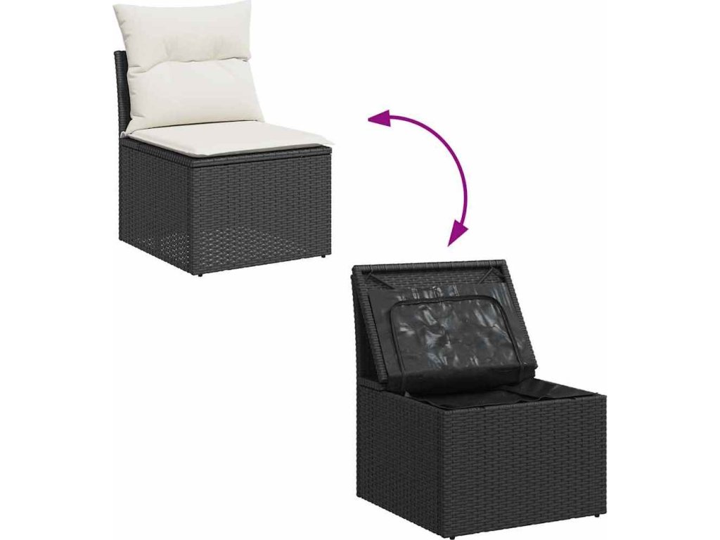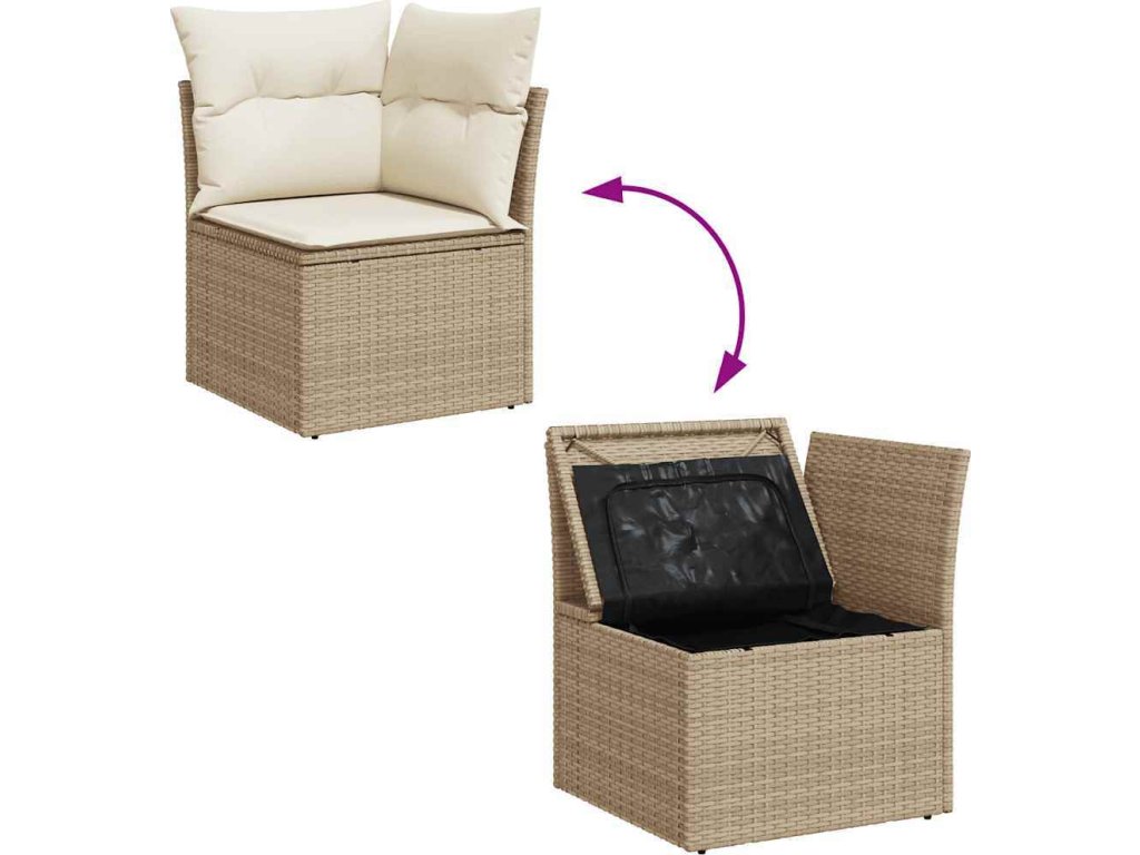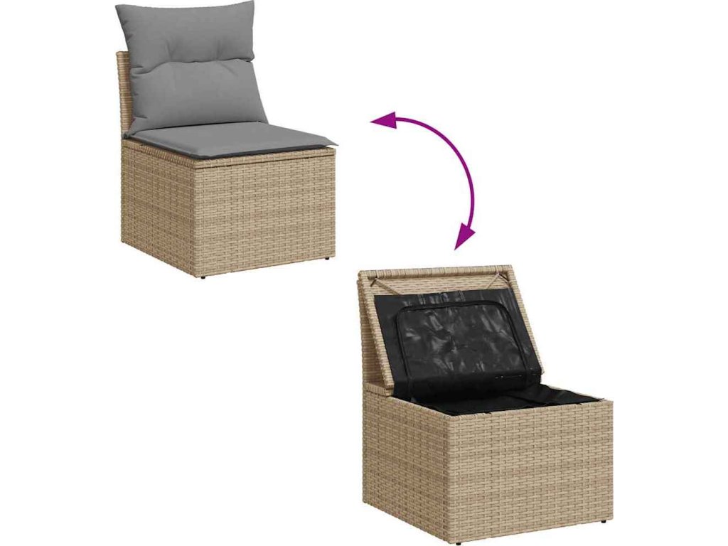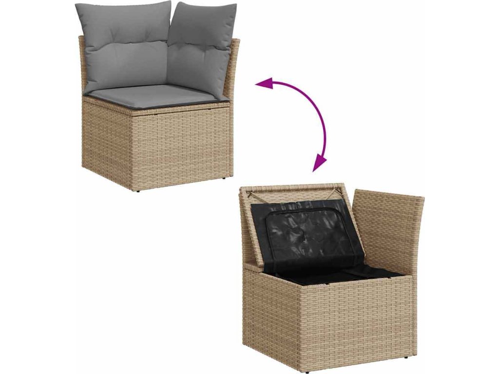 - Úložný prostor s voděodolným vakem: Každý zahradní sedací díl má úložný prostor pod sedákem, který je opatřen voděodolnou vložkou a poslouží vám k ukládání podušek, hraček a dalších věcí. Vnitřní vaky mají horní kryt a lze je bezpečně připevnit k sedákům pomocí suchého zipu, což zaručí větší stabilitu.