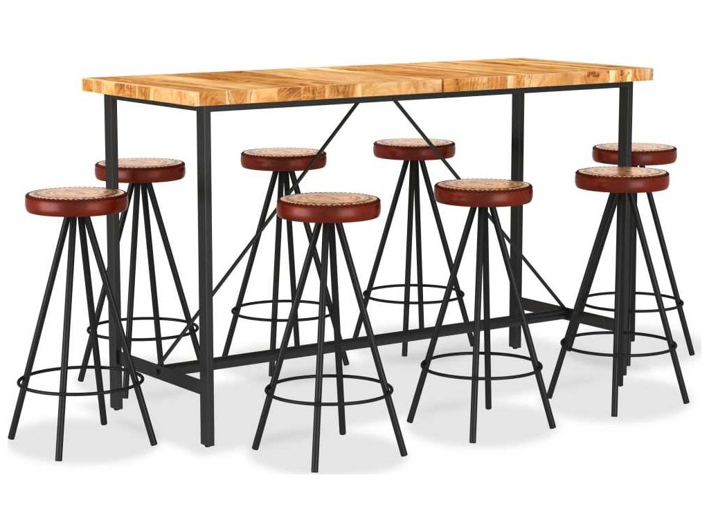9dílný barový set masivní akáciové dřevo, pravá kůže a plátno [3053443]
