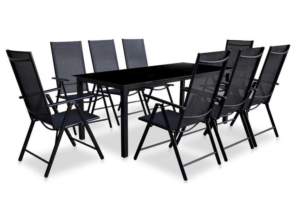 9dílný skládací zahradní jídelní set hliník černý [43382]