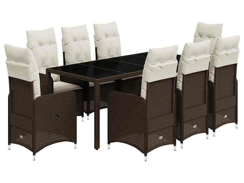 9dílný zahradní bistro set s poduškami hnědý polyratan [3277070]