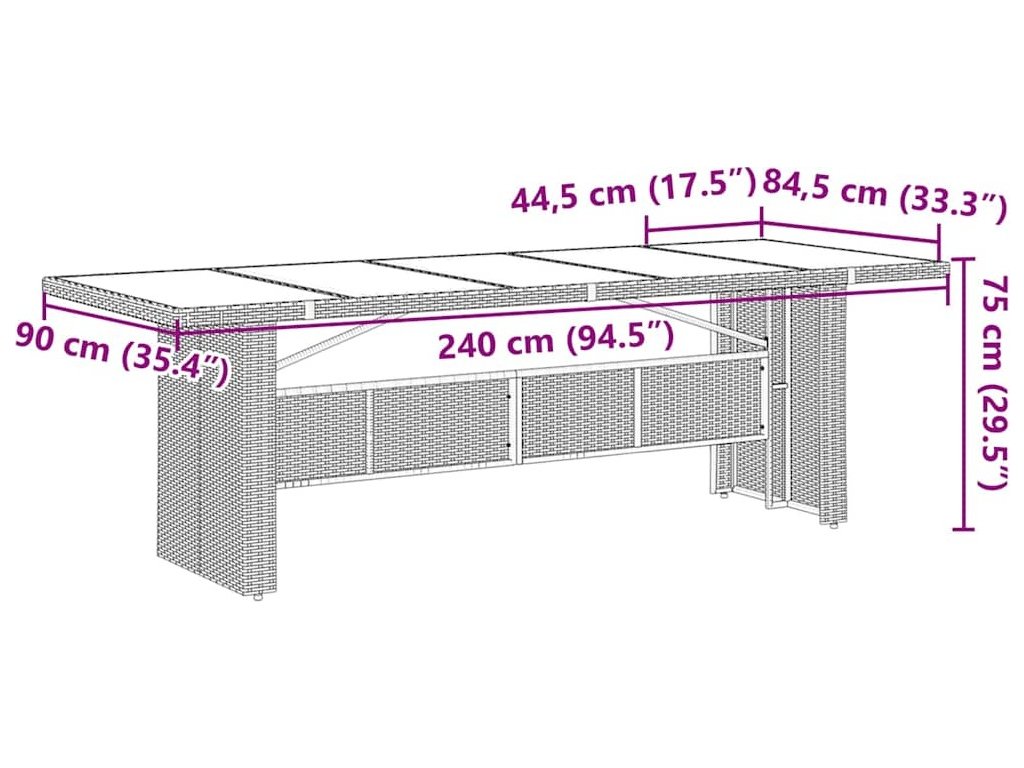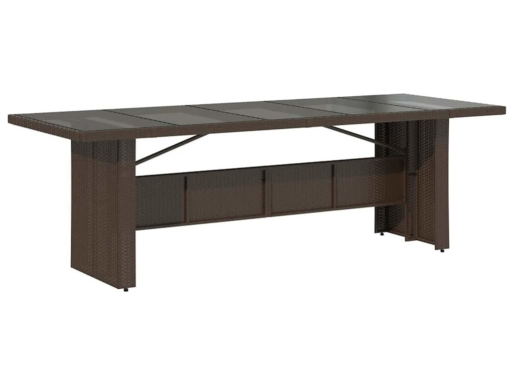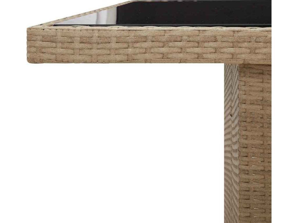 - Skleněná deska stolu: Deska venkovního stolu je zhotovena ze silného a odolného tvrzeného skla, takže ji snadno očistíte vlhkým hadříkem a zároveň do vašeho venkovního prostoru vnese nádech elegance.